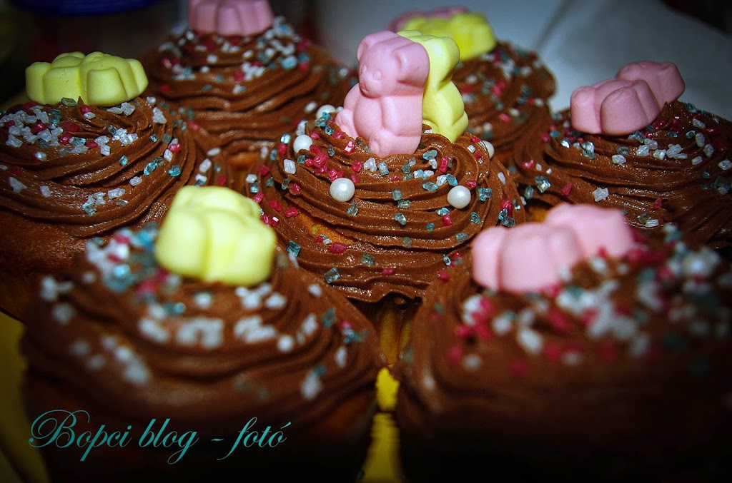Ha teljesen kihűlt, hidegre a cupcake tészta, kivesszük a formából, és habzsákkal vagy nyomóval csigákat nyomunk a sütikre, aztán díszítjük. A pille gumimaci megáll rajta.