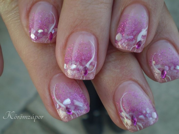 Van egy (akárhanyadrangú) unokatesóm. Ja, igen, ez csicsás köröm. Tehát van egy fiatalasszonyka, aki nekem rokonom, és az ő esküvői ruhájához illett volna egy ilyesmi köröm. Csak azért került ide. :))
