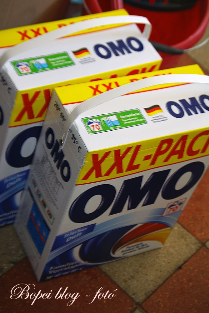 - OMO mosópor (bazinagy kiszerelés) 2199 Ft, kb. 70 mosásra elég elvileg, de ha nem adagoljuk túl, 100-ra is kifutja