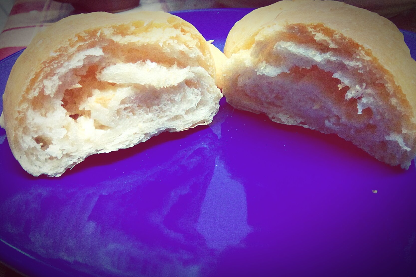 - Ha megkelt, kerekre és vékonyra (kb. 2-3 mm) kinyújtjuk, 8 fele vágjuk, megkenjük kevés fokhagymakrémmel, megszórjuk reszelt sajttal (az egészre kb. 20 dkg ment nekem), és kintről befele feltekerjük.