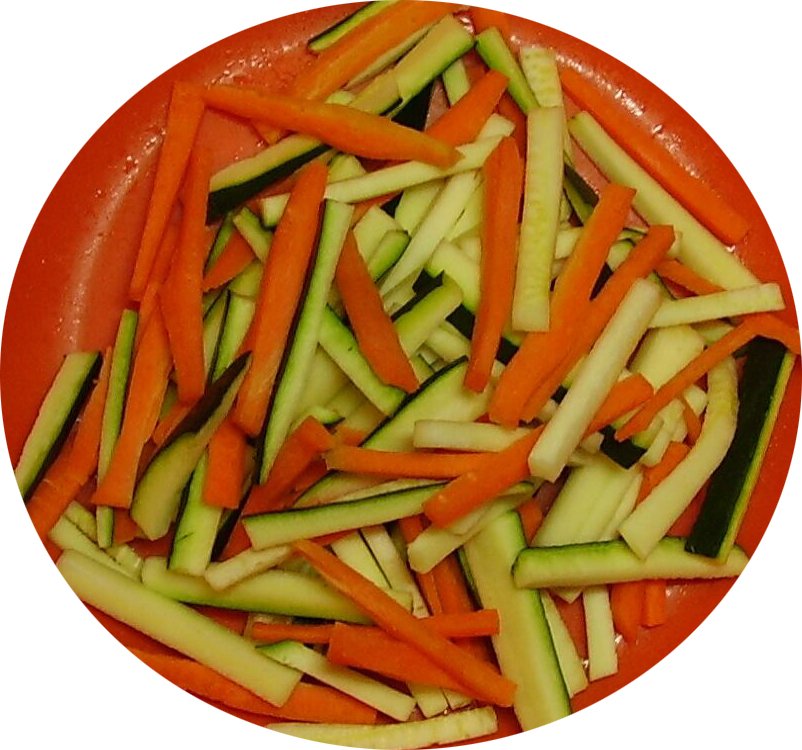 Villámgyorsan akartam elkészíteni az ebédet. Gluténmentesen, ám nem főtt rizzsel, nem is krumplival. Zöldségre vágytam, valahogy máshogy, mint eddig készült. Volt friss cukkinim, friss sárgarépám, hát felhasználtam.